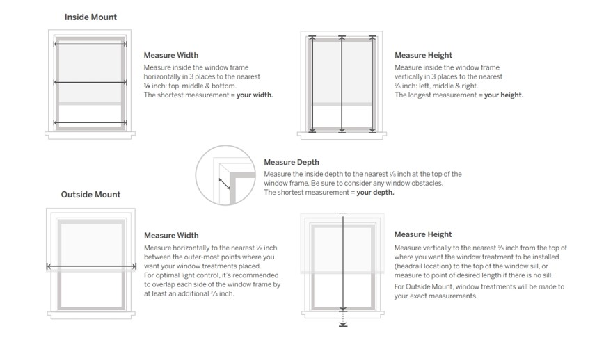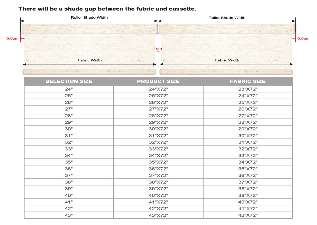 Suggestion: for inside mounting, can deduct 0.3-0.5cm of the width For outside mounting, can add about 10cm of width and height