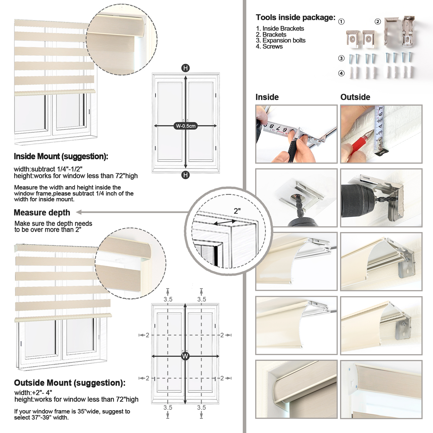 - Order Size:For inside mount, if your window is 34″ width, order a 34″ shade or slightly smaller, window depth >2″. The window shade height can be adjusted from 0″ to 79″.(Please Note):The fabric width will be 1″ narrower than the total shade size.
